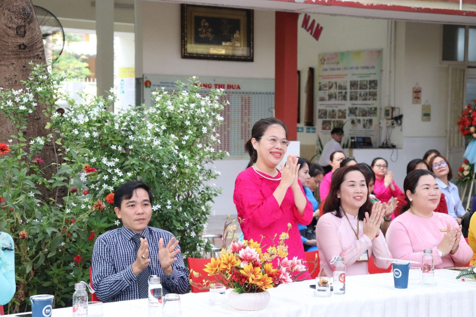 Đến tham dự buổi lễ, nhà trường vinh dự được đón tiếp bà Nguyễn Lê Thiên Thanh – Phó Chủ tịch UBND phường Cầu Ông Lãnh; Cô Nguyễn Thị Mỹ Phương – Hiệu trưởng trường Mầm non Bé Ngoan; Cô Nguyễn Mai Hằng – Hiệu trưởng trường Mầm non Bến Thành; Cô Trần Thị Thế Hiệp – Hiệu trưởng trường Mầm non 30/4; Cô Vũ Thị Ngọc Bắc – Hiệu trưởng trường Mầm non Tuổi Hồng cùng các ông, bà trong Ban Đại diện CMHS trường và Ban đại diện CMHS các lớp cùng tham dự. Thật vui và hân hoan khi nhà trường chào đón các giáo viên và đặc biệt là 300 các bạn nhỏ khối lớp Lá đến từ các trường: Mầm non Bé Ngoan, Mầm non Bến Thành, Mầm non 30/4 và Mầm non Tuổi Hồng cùng tham dự.